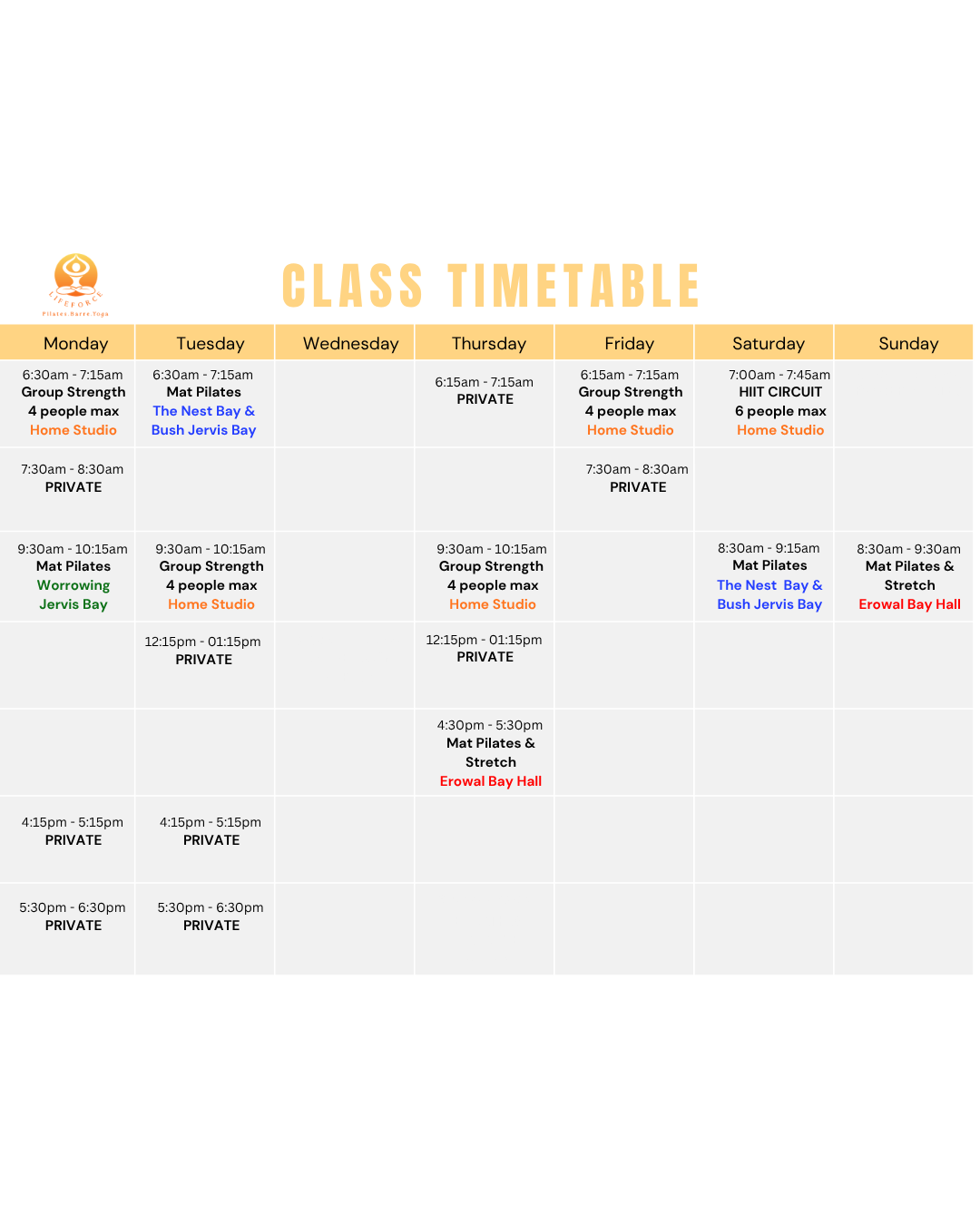 Private sessions, group strength, HIIT circuit and mat Pilates at Erowal Bay Community Hall: